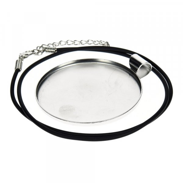 Anhänger für Mosaik 49 mm - rund versilbert, schwarzes Band