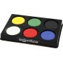 Blockfarbe/Temperablock. Die Farben sind untereinander mischbar. Die Bürsten werden in Wasser gereinigt.