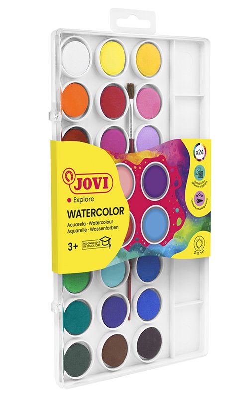 Aquarell-Set - Jovi - Kit mit 24 Farbkuchen, 1 Pinsel, 1 Kunststoffetui