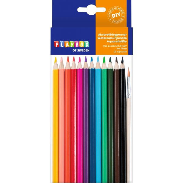 Beginnen Sie gleich mit der Erstellung von Kunstwerken mit Aquarellstiften. Das Set enthält 12 Buntstifte und einen Pinsel. Die Buntstifte eignen sich sowohl zum Trockenfärben als auch zum Aquarellieren, wenn man das Gezeichnete mit Wasser übermalt, entsteht ein Aquarelleffekt.