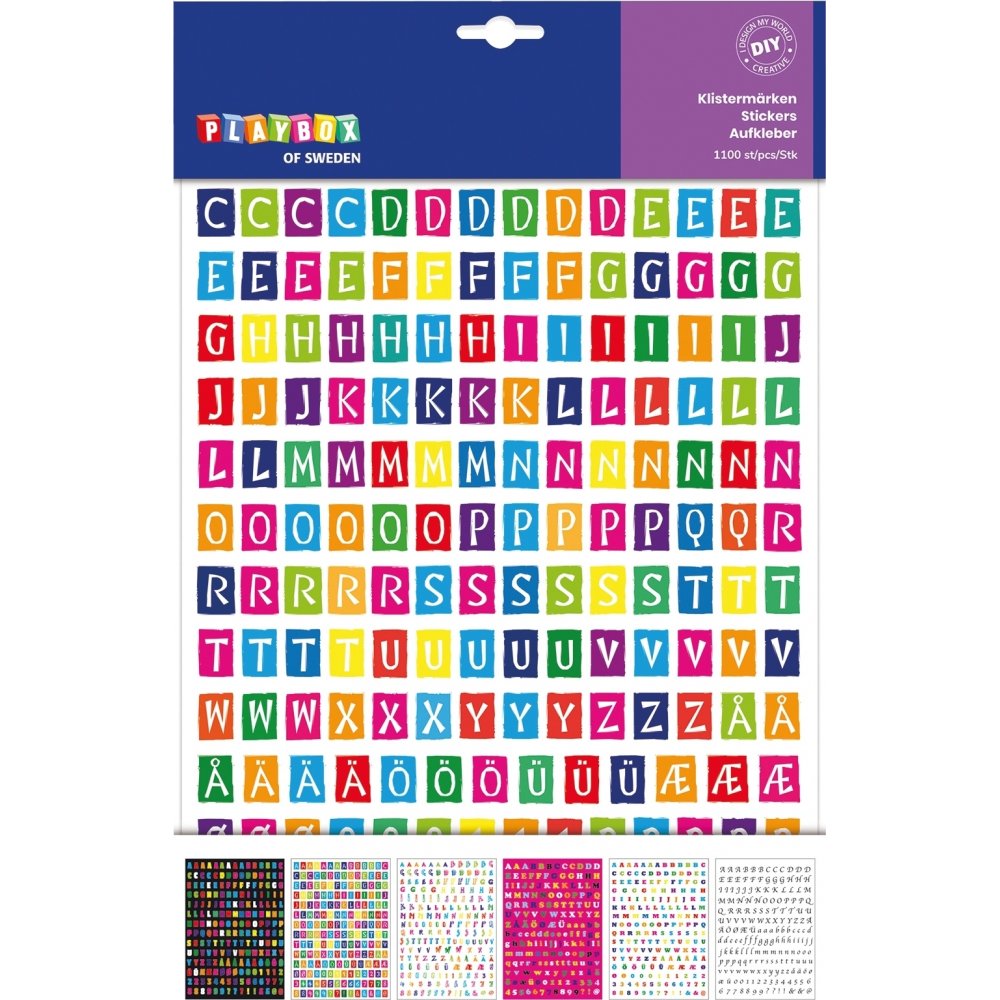 Aufkleber mit Buchstaben in verschiedenen Farben und Schriftarten. Kleben Sie ein Namensschild auf oder verwenden Sie es für Scrapbooking, Grußkarten und Zeichnungen.