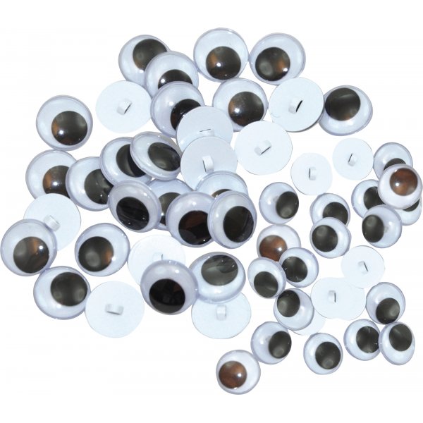 Augen mit beweglicher Pupille in zwei verschiedenen Größen. Die Augen haben auf der Rückseite eine Schlaufe, sodass Sie sie einfach annähen können