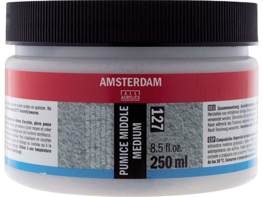 Benötigen Sie ein Medium, um Ihrem Gemälde Struktur zu verleihen? Das Bimssteinmedium ist in verschiedenen Rauheiten erhältlich und ergibt eine schöne Textur, wenn Sie es mit der gewünschten Farbe mischen.