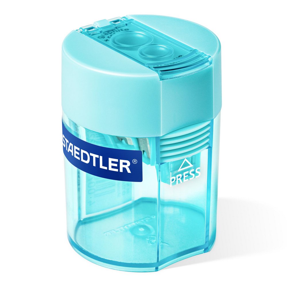Bleistiftspitzer Cyan mit Behälter - Doppelloch