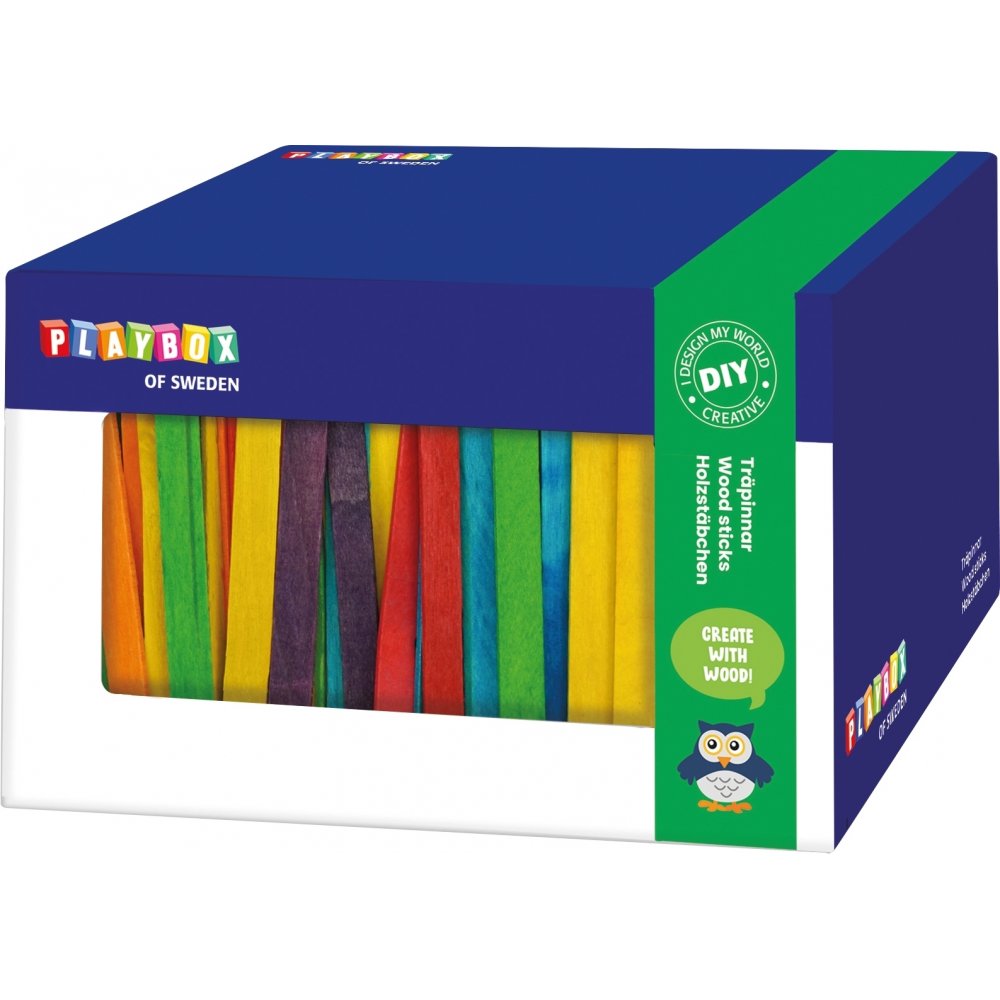 Farbige Holzstäbchen in Box. Die Stäbe können nach Ihren eigenen Vorstellungen beliebig zusammengefügt werden. Schauen Sie sich gerne unsere Basteltipps an, um sich inspirieren zu lassen.