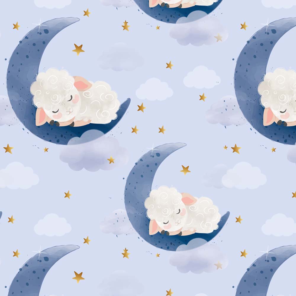 Gemustertes Trikot 150 cm - Lamm auf Wolke blau