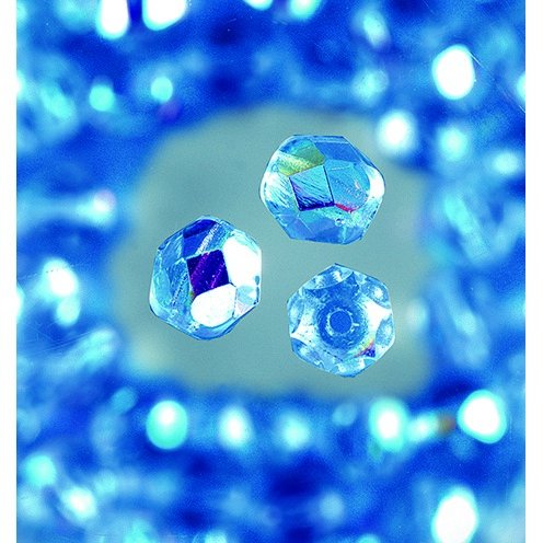 Glasperlen facettiert - halbblau - rund, schimmernd