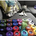 24 Knäuel Häkelgarn in zwölf verschiedenen Farben.