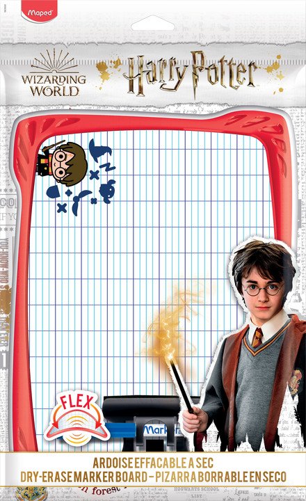 Whiteboard für Kinder mit Harry-Potter-Thema. Im Set sind außerdem ein Whiteboard-Stift und ein Radiergummi enthalten. Das Board besteht zu 100 % aus recyceltem Material.