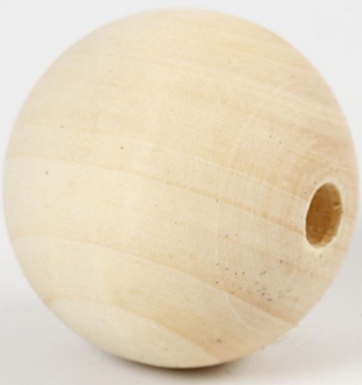 Unbehandelte Holzperlen mit durchbohrtem Loch.