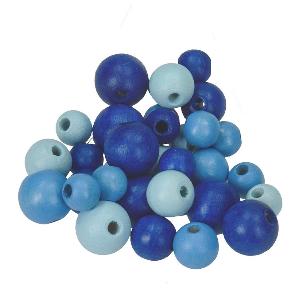Holzperlen 8,10,12 mm - blaue Mischung, 25 g Größenmischung