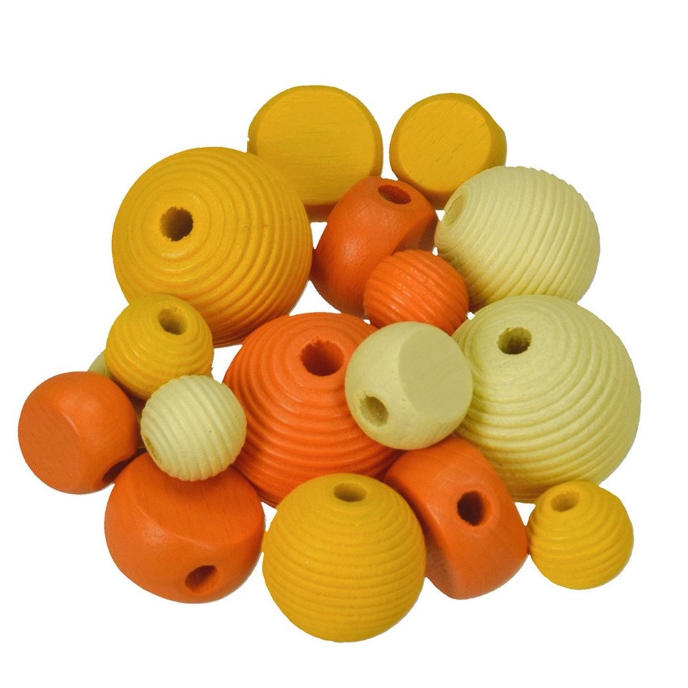 Holzperlen - Gelbmischung 25 Stk. Farb-Form-Mix