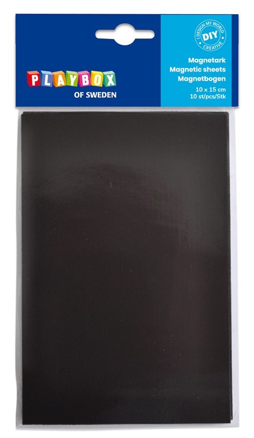 10 Magnetfolien à 15x10 cm, mit selbstklebender Rückseite. Ca. 0,8 mm Dicke.