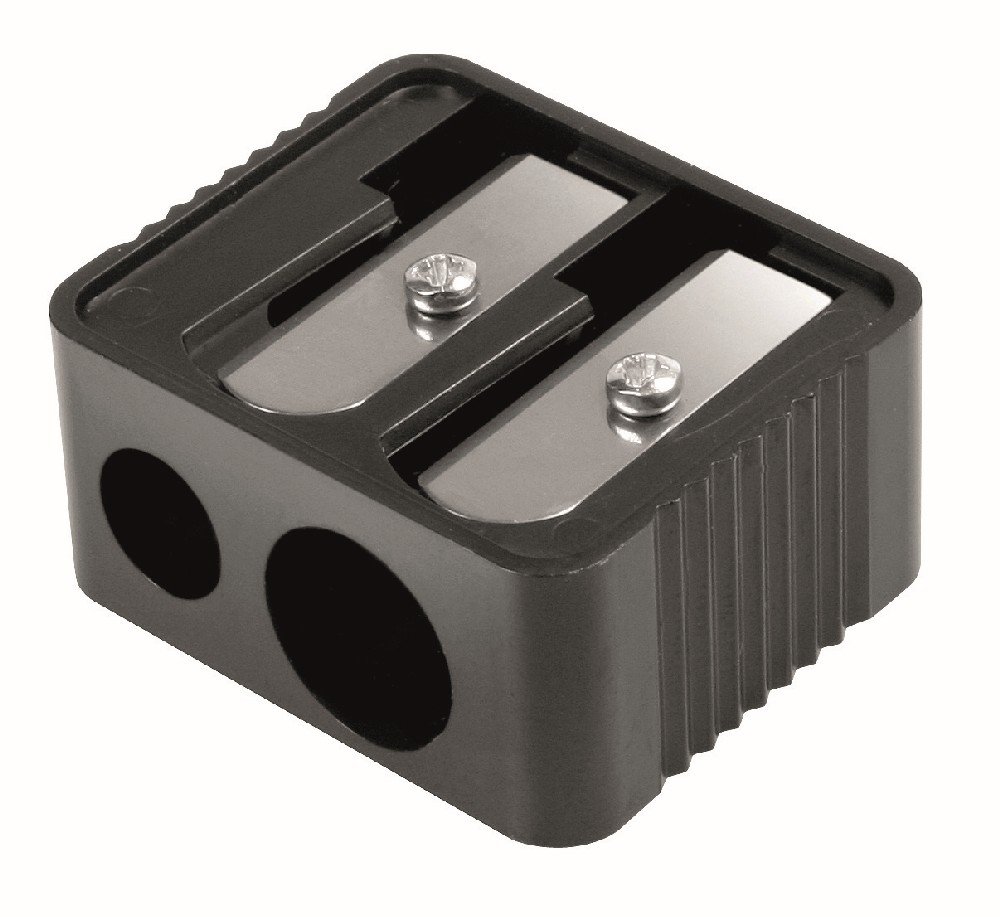 Ein Bleistiftspitzer mit Doppellöchern, der für normale Buntstifte genauso geeignet ist wie für Make-up.
