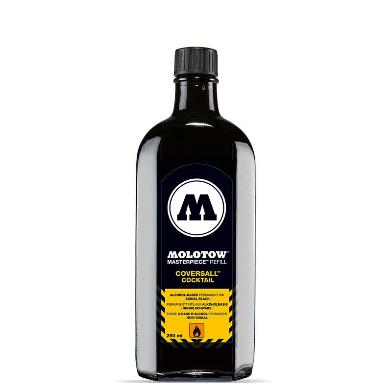 Wenn Sie Ihren Masterpiece-Marker nachfüllen müssen, ist dies der CoversAll, der zutrifft. Eine echte Rußfarbe auf Alkoholbasis mit synthetischem Bitumen, die eine dauerhafte signalschwarze Farbe mit hoher Deckkraft ergibt.