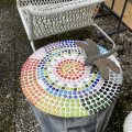 Weißer, witterungsbeständiger Mörtel zum Befestigen von Mosaiken oder Glas auf festen Oberflächen.
