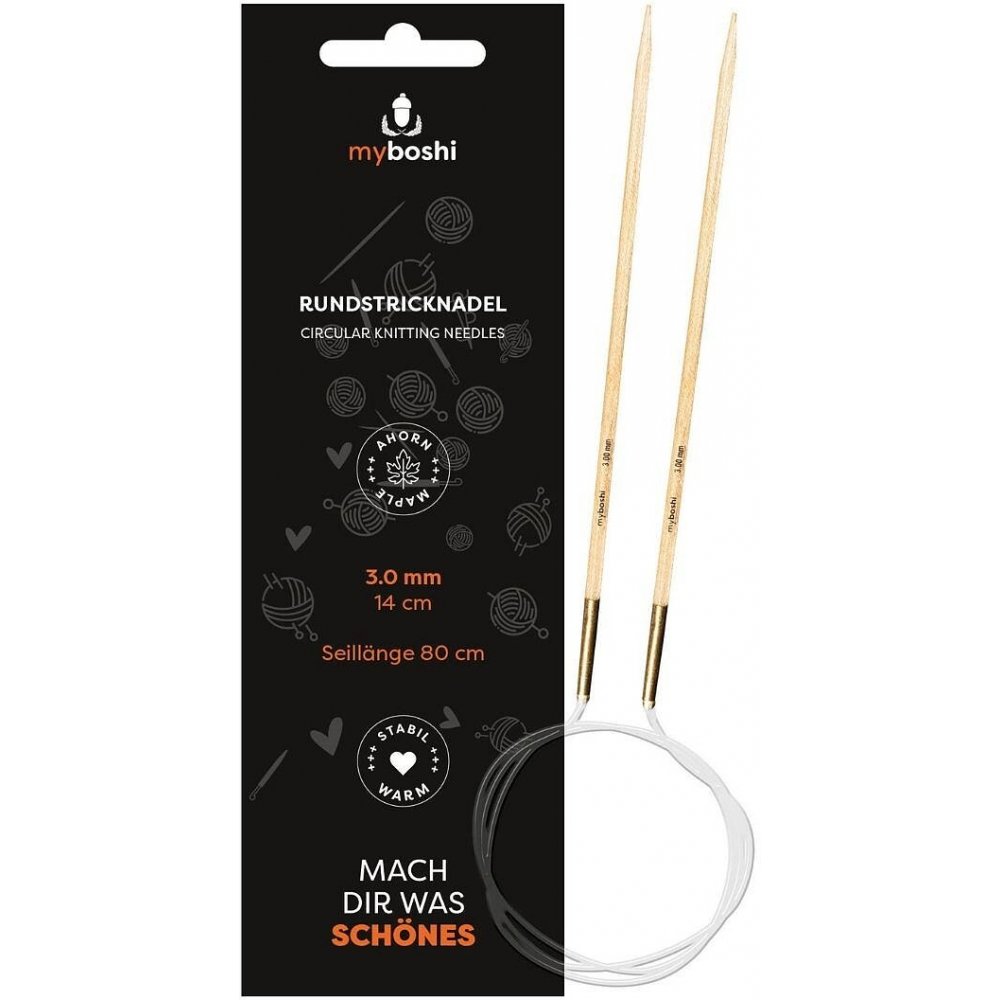 Myboshi-Rundnadel mit 3 mm Stärke und 80 cm Fadenlänge (einschließlich der beiden Nadeln), geeignet zum Stricken mit dünner Wolle. Das Besondere an myboshi Rundstricknadeln ist, dass die Schnur austauschbar ist. Wenn Ihnen die Standardlänge von 80 cm zu lang ist, können Sie mit wenigen Umdrehungen schnell die Leinen wechseln. In diesem Fall empfehlen wir unsere kürzere Seilvariante, Ersatzseil für Rundstricknadeln 60 cm.