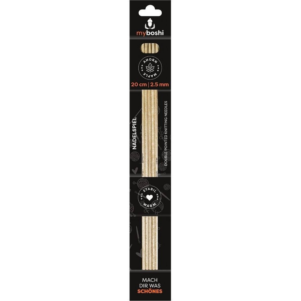 Die Stricknadeln von Myboshi bestehen aus fünf Nadeln und überzeugen besonders durch das deutsche Ahornholz aus nachhaltiger Forstwirtschaft, das zu 100 % biologisch abbaubar und zu 100 % schadstofffrei ist. Das Arbeiten mit Stäbchen ist viel einfacher und effizienter. Vor allem, wenn es um Socken, Handschuhe und Co. geht.