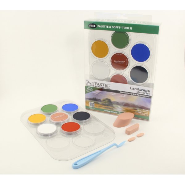 Ein Set mit 7 gemischten Pastellfarben in einer Kunststoffpalette. Inklusive Schwammwerkzeug.