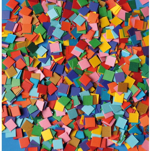 10.000 Stück Papiermosaik in gemischten Grundfarben mit der Größe 10x10 mm.