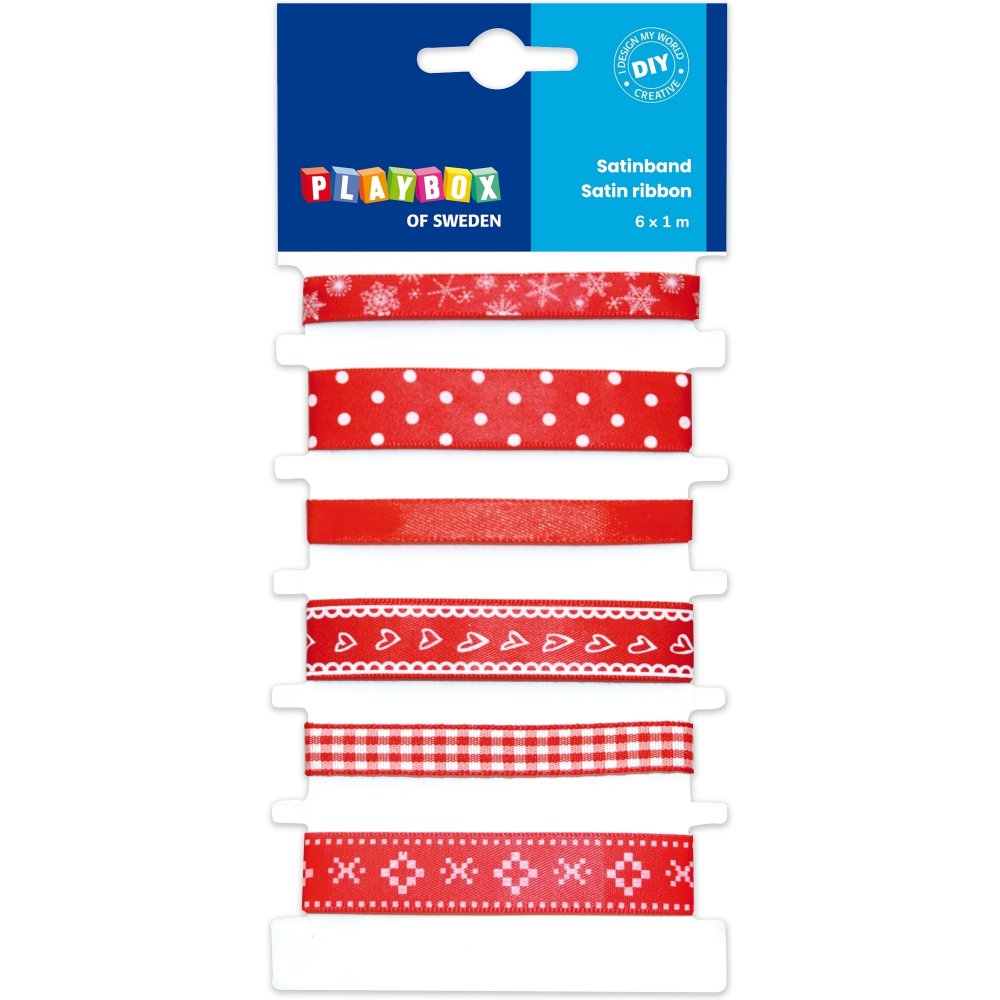 Satinband mit verschiedenen Weihnachtsmotiven. Verzieren Sie die Weihnachtsgeschenke, Weihnachtskarten, verwenden Sie es als Blumendekoration oder zum Aufhängen der Weihnachtskugeln.