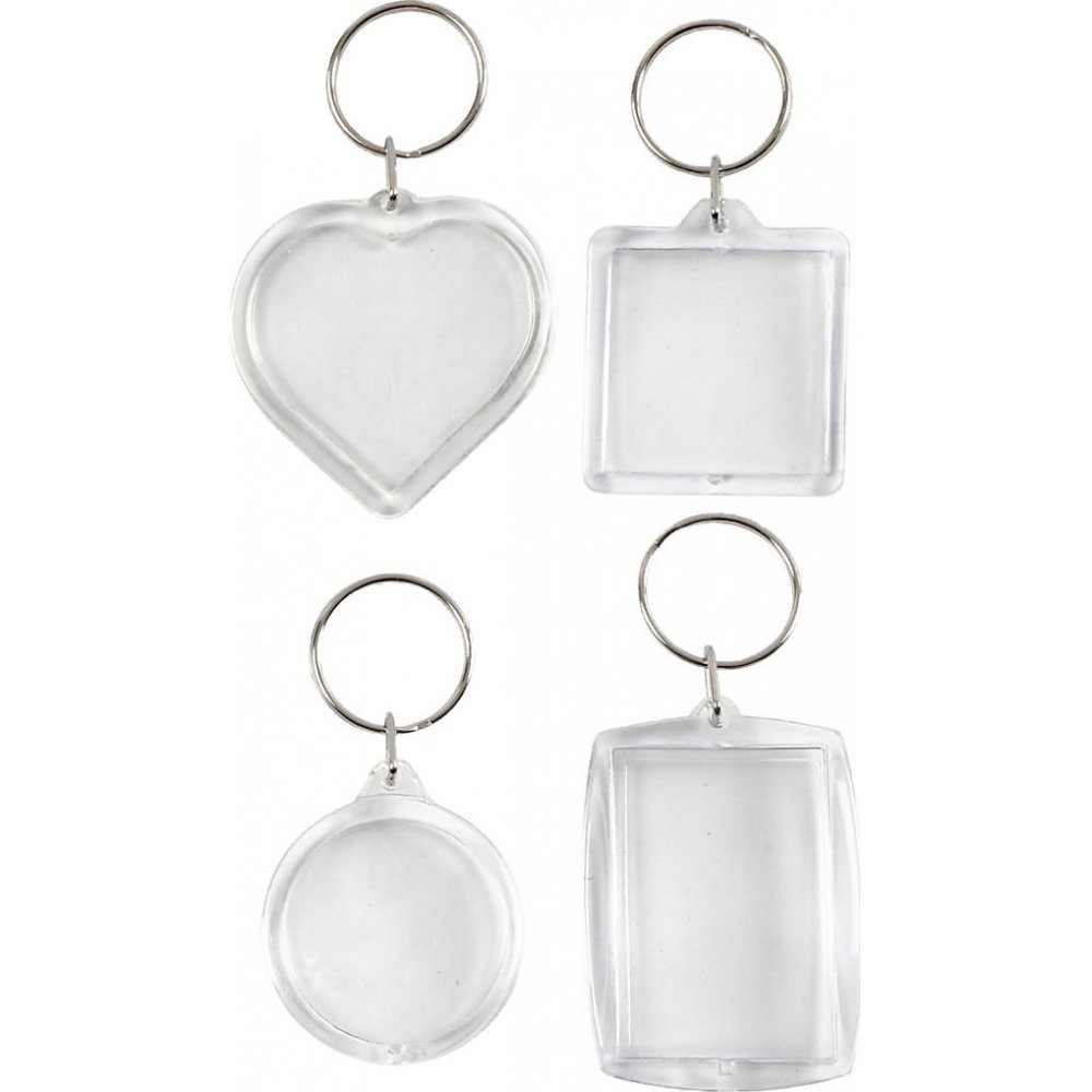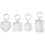Schlüsselanhänger mit quadratischen zweiteiligen Anhängern aus klarem Acryl, in die Sie Ihre eigenen Bilder oder Fotos einfügen können.