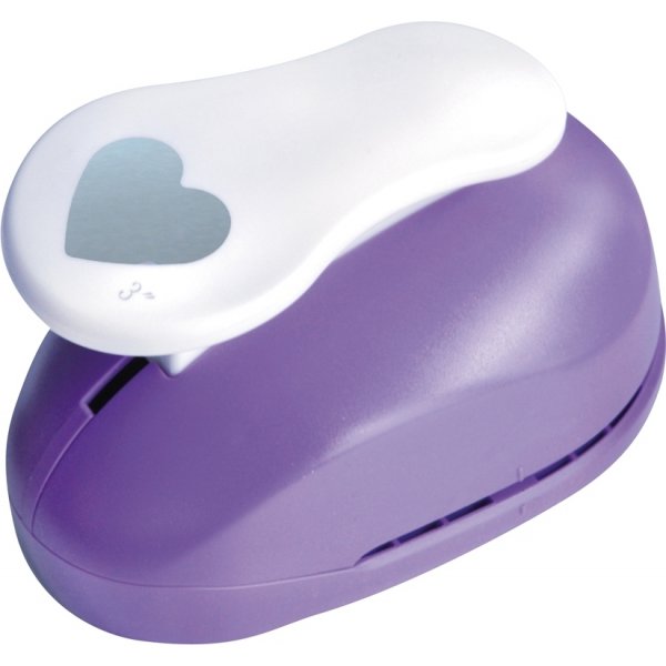 Figurenstanzer mit Motiv eines Herzens. Die ausgestanzten Figuren können für viele Dinge verwendet werden, zum Beispiel zum Verzieren von Grußkarten, auf Namensschildern oder für Scrapbooking.