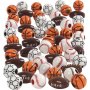 Mischung aus runden Kunststoffperlen in Form verschiedener Kugeln, geprägt, charakteristische Details.