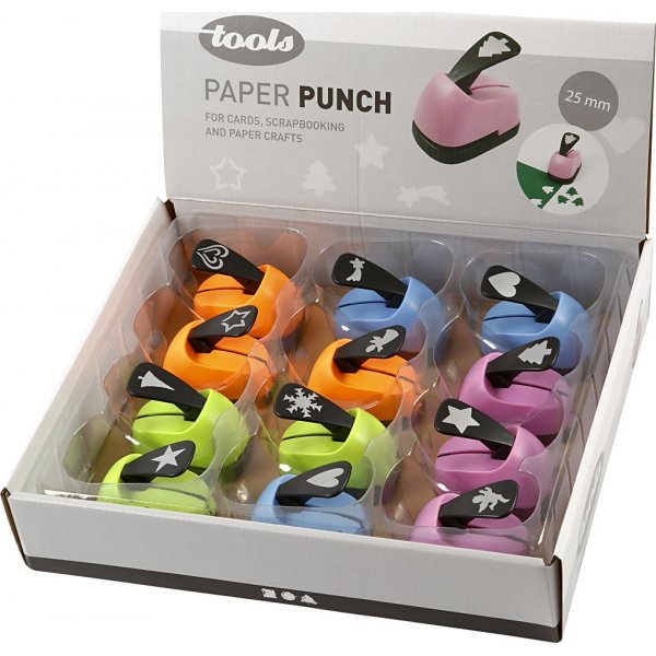 Sortiment verschiedener Stanzer zum Ausstanzen von Mikromotiven in Papier und dünnem Karton.
