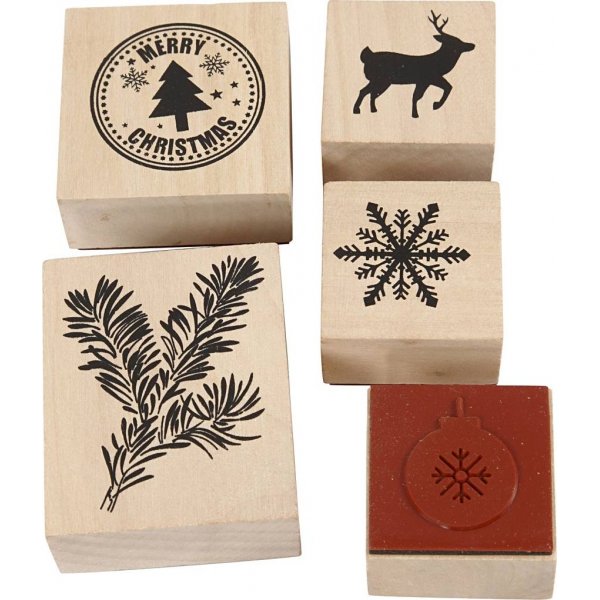 Stempel mit Holzschaft und gummierter Druckoberfläche mit detaillierten Motiven. Kann je nach Untergrund mit unterschiedlichen Stempelschäumen in Schwarz und Farbe verwendet werden. Die Stempel werden unmittelbar nach Gebrauch mit Wasser gereinigt. Je nach Untergrund werden die Stempel als Dekoration auf Karten, Anhängern, Schachteln, Stoffen und Ähnlichem angebracht. Die Stempel eignen sich auch für Abdrücke in Ton, mit und ohne Stempelfarbe. Das Set besteht aus 3 Stempeln in der Größe 4,5x4,5, 1 Stempel in der Größe 6x6 cm und 1 Stempel in der Größe 6x7,5.