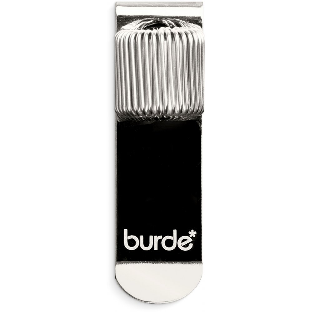 Stifthalter aus silberfarbenem Metall mit Clips und Platz für einen Stift.
