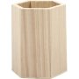 Sechseckiger Bleistiftständer aus hellem Holz.