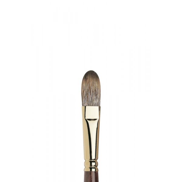 Eine Haselnuss mit flachen Borsten und ovaler Spitze für breite Markierungen mit weichen Kanten.