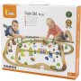Schönes Holzset bestehend aus verschiedenen Eisenbahnschienen, magnetischem Personen- und Güterzug, Fahrzeugen, Gebäuden, Menschen, Tieren, Bäumen, Verkehrsschildern usw. Genug, um Ihre eigene kleine Stadt mit Bahngleis zu bauen. Für viele Stunden fantasievollen Spielens.
