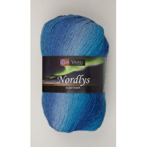 Nordlys-Garn ist ein superschönes mehrfarbiges Melangegarn aus einer Mischung aus Wollfasern und Nylonfasern (75 % Woll-Superwash und 25 % Nylon) und ist in etwa fünfzehn verschiedenen leuchtenden Mehrfarben erhältlich. Nordlys ist norwegisch und bedeutet "Nordlichter" und es handelt sich wirklich um ein magisches, farbveränderndes Nordlichtgarn, von dem wir sprechen. Obwohl es etwas dünner als normales Sockengarn ist, lässt sich Nordlys-Garn dennoch leicht stricken. Obwohl das Garn für etwas dünnere Lumpensocken gedacht ist, eignet es sich auch hervorragend zum Stricken schöner Mützen, Tücher, Schals und Pullover mit Farbwechsel. Ein Knäuel mehrfarbiges Garn der Marke Viking Nordlys reicht normalerweise für ein Paar gestrickte Socken. Kleidung und andere Materialien aus dem Garn können bei niedriger Temperatur gebügelt und bei bis zu 40 Grad in der Maschine gewaschen werden.