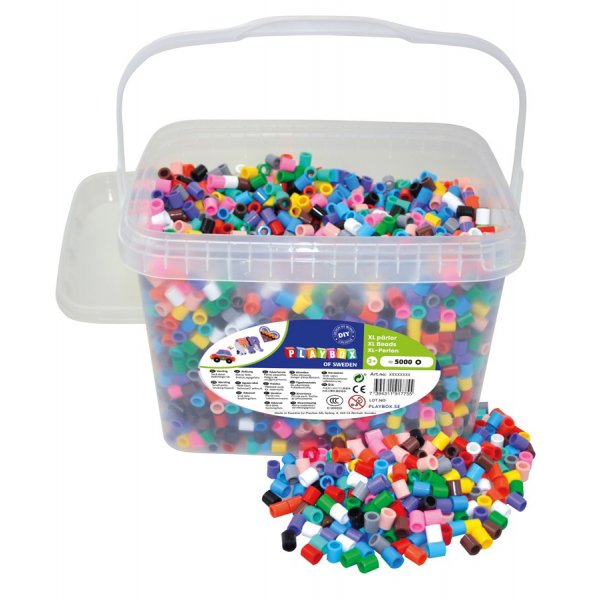 Eimer mit 5000 XL-Perlen in gemischten Farben.